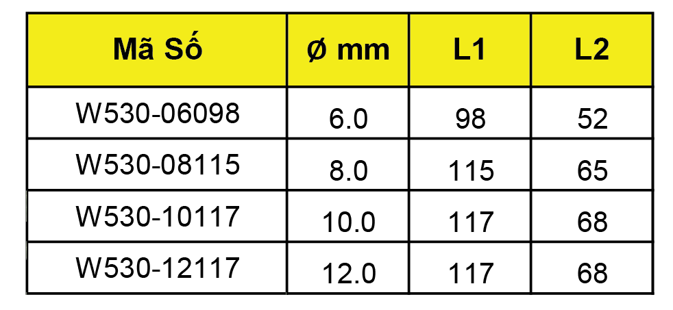 Đầu mũi khoan đa năng làm bằng hợp kim Tungsten Carbide đặc biệt với độ cứng 92.5 HRC giúp khoan được dễ dàng với nhiều vật liệu khác nhau.